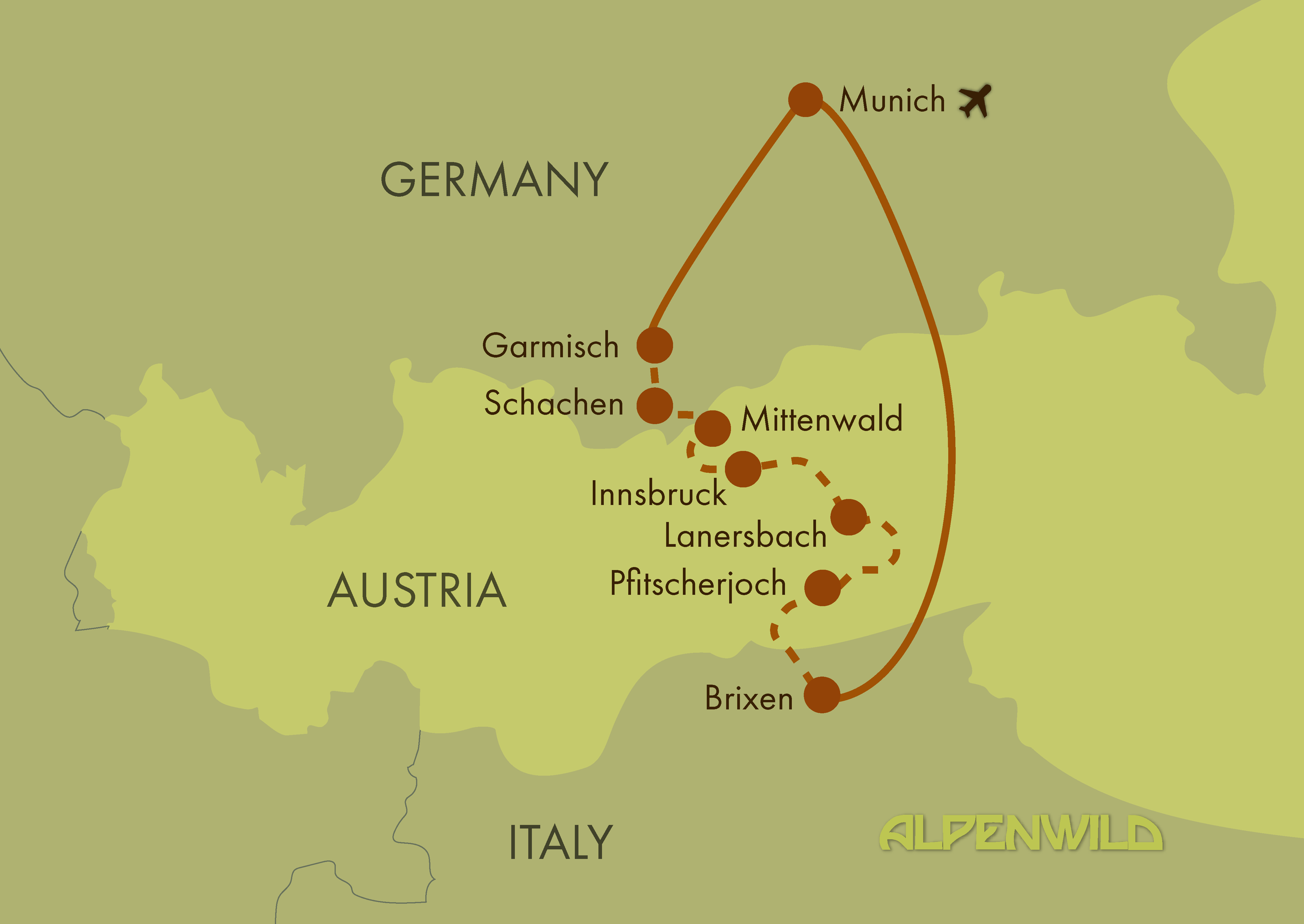 Traverse across three different Alpine countries: Germany, Austria and Italy